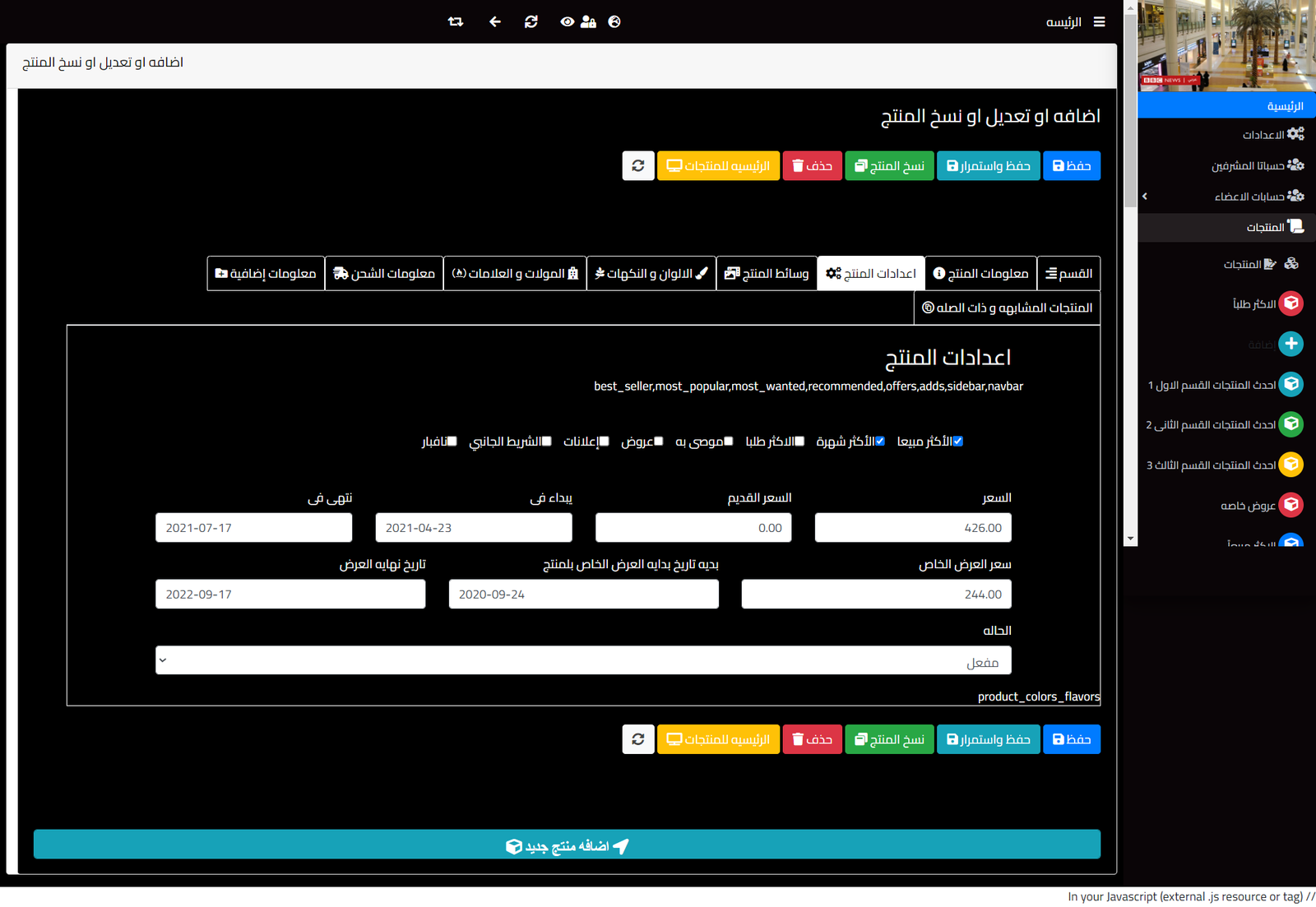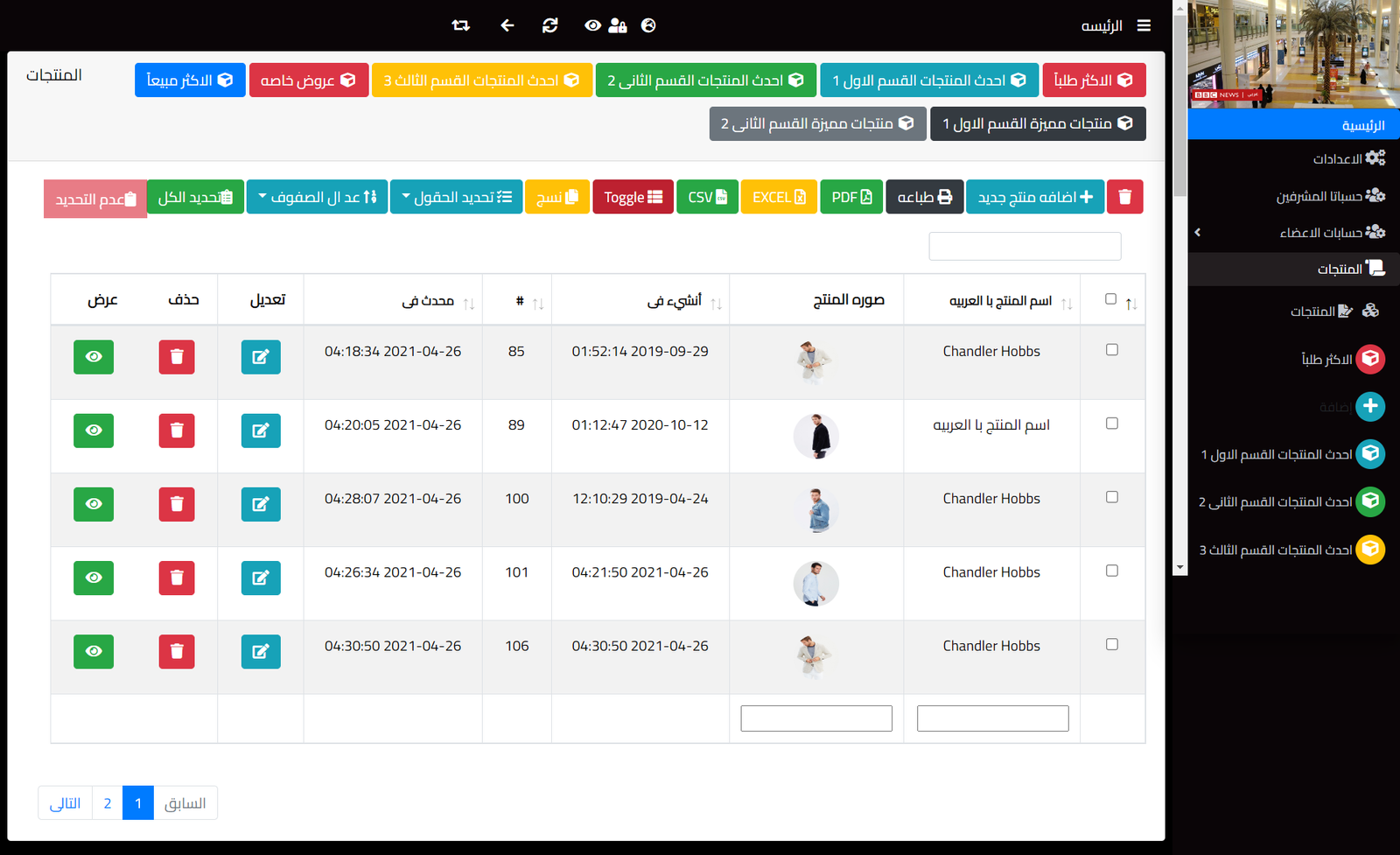 dashboard ecommerce
